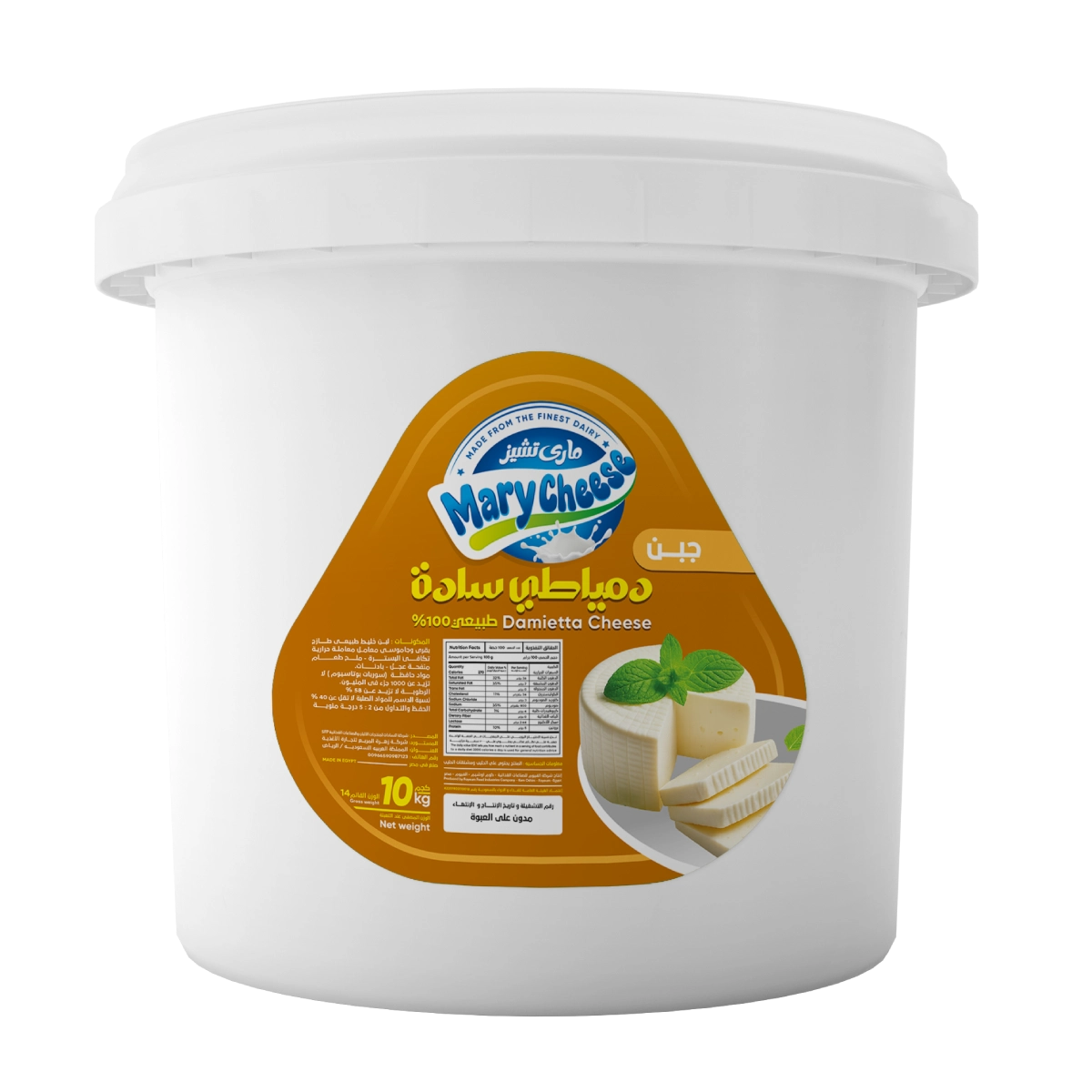 Mary Cheese’s Domiati Cheese is distinguished by its authentic taste inspired by the city of Damietta, known for its balanced saltiness and soft texture, making it a perfect choice for traditional cheese lovers. Carefully prepared using time-honored methods, it retains its unique flavor and high quality. Available in a 14 kg pack, it is ideally suited for restaurants and large kitchens, adding a special character to a wide variety of dishes.