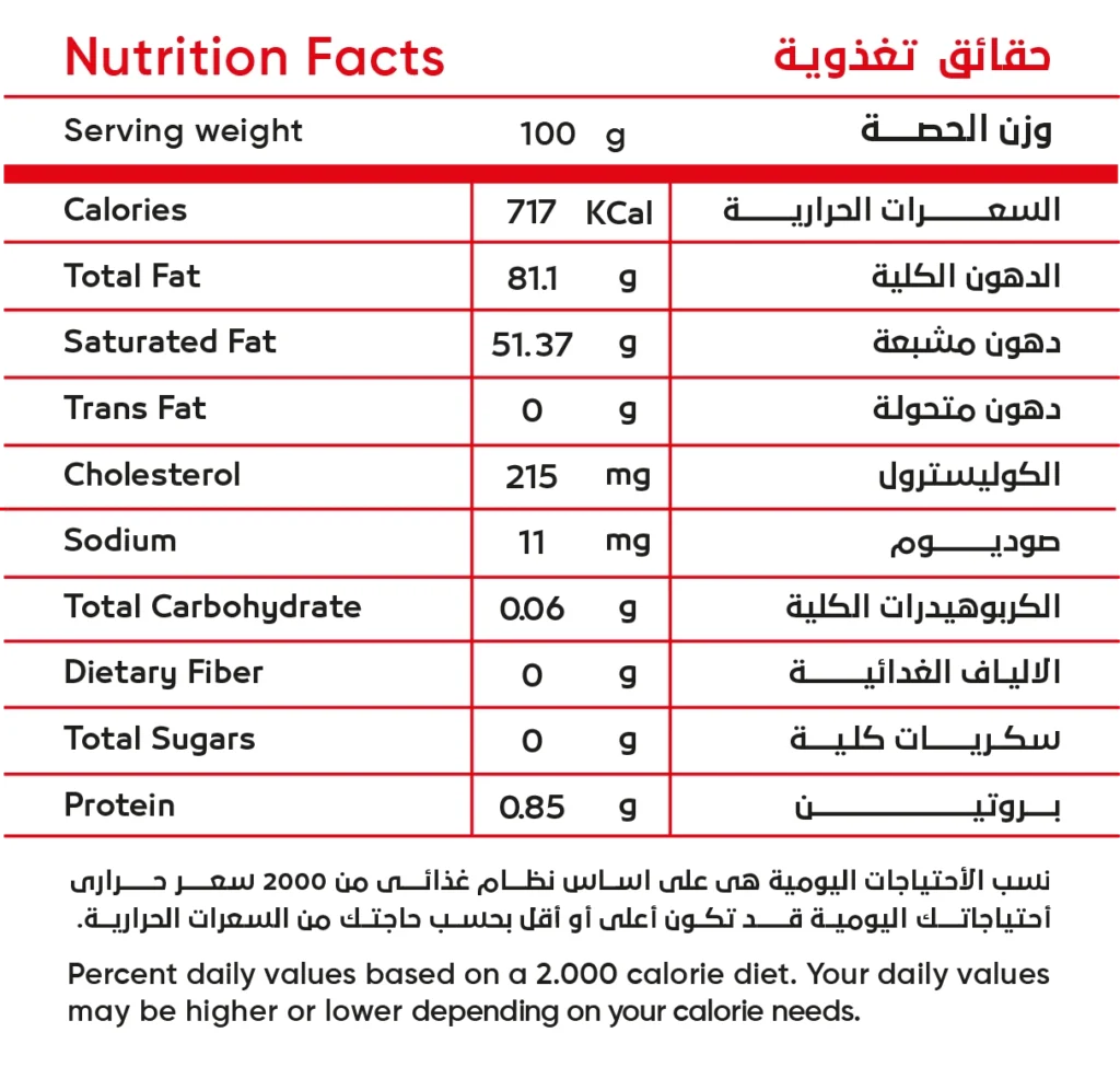 Wadi Al Hiloub Pure Butter Ghee is a premium alternative to regular cooking oils. Made from pure cow’s milk, it brings rich dairy goodness to every meal — enhancing flavor, aroma, and quality in every bite.